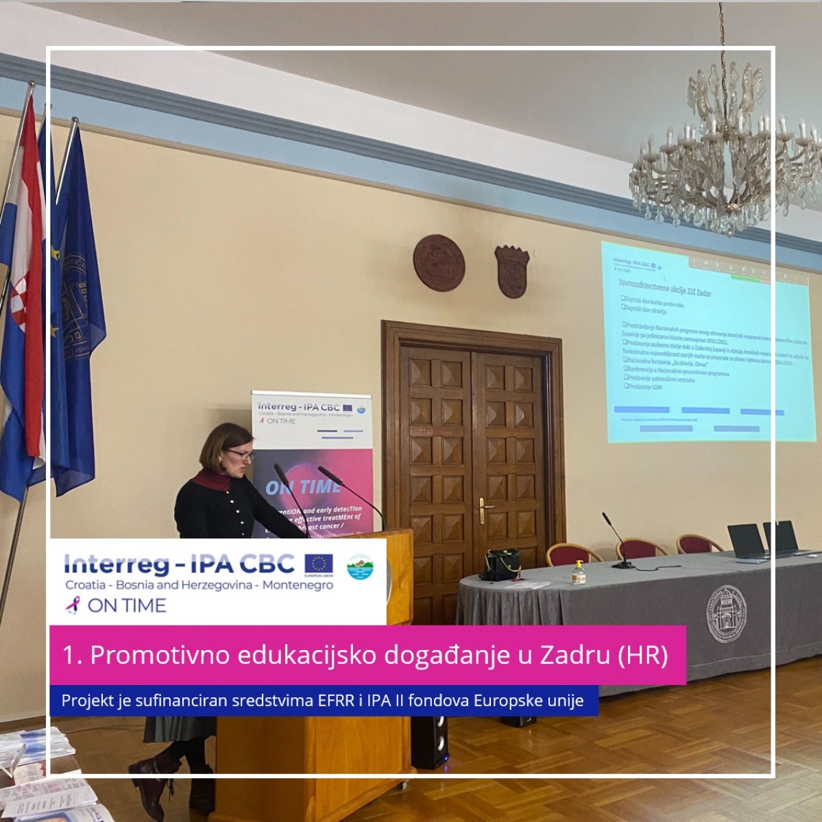 promotivno edukacijska događanja projekta „ON TIME - Prevencijom i ranim otkrivanjem do učinkovitijeg liječenja raka debelog crijeva i raka dojke„ sufinanciranog iz Programa prekogranične suradnje Hrvatska - Bosna i Hercegovina - Crna Gora 2014.-2020.